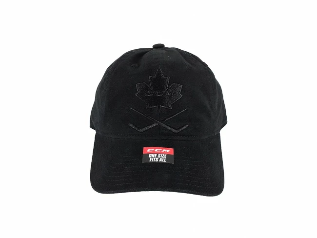 La casquette est disponible dans une taille polyvalente, mais avec une boucle à l’arrière, ce qui vous permet d’ajuster la taille en fonction de vos besoins personnels. Le design simple mais élégant fera en sorte que personne ne vous oublie plus. Trois signes importants cousus sur le devant, à savoir la feuille d’érable canadienne, le logo du CCM et des bâtons de hockey croisés, ajoutent une touche de hockey à la casquette de baseball.