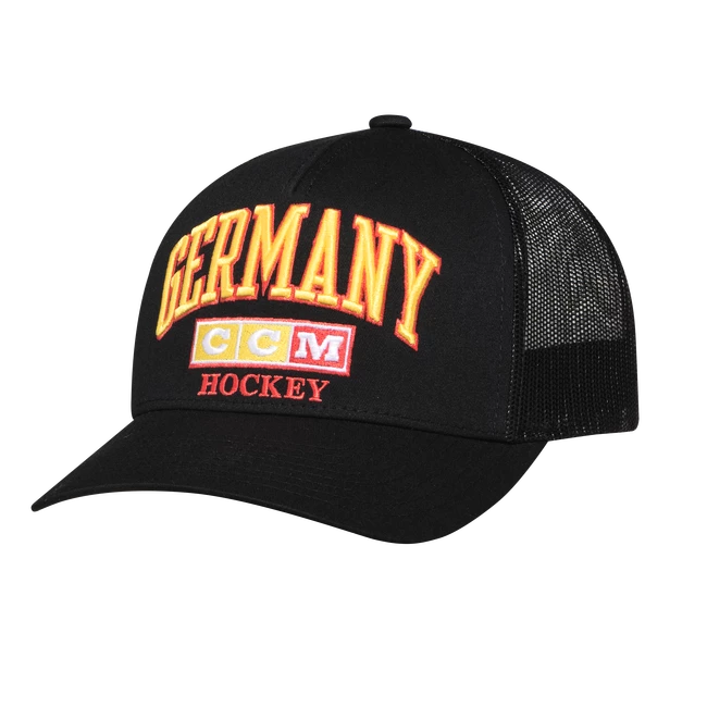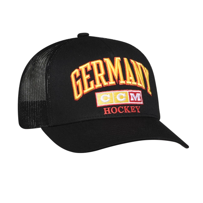 Casquette de baseball noire CCM FLAG MESHBACK TRUCKER pour tous les fans de hockey.
