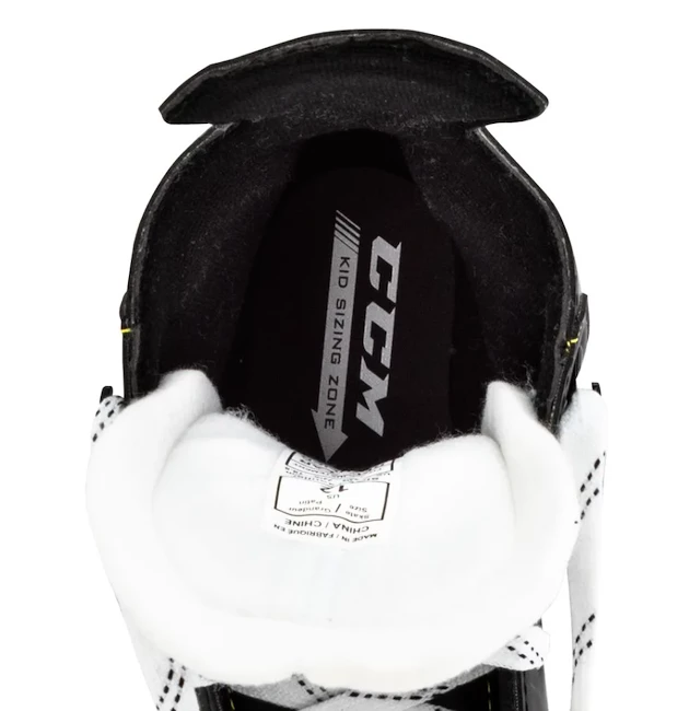 Squelette INJECTÉ AVEC LA TECHNOLOGIE MESH SKINLanguette en feutre asymétriqueSemelle intérieure KID SIZING ZONEPorte-couteau CCM SupportCouteaux CCM Speedblade Inox
