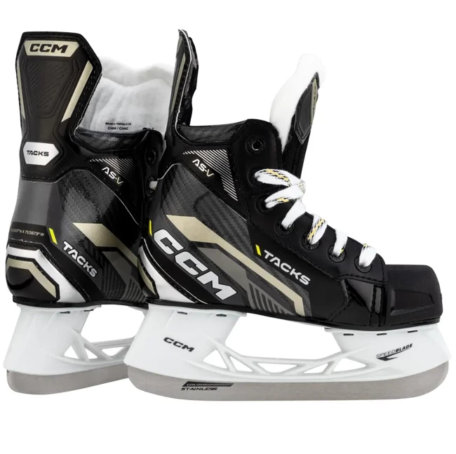 TECHNOLOGIE INJECTÉE RENFORCÉE SQUELETTE AVEC COMPOSITE SYNTHÉTIQUESemelle intérieure MOLDED KID SIZING ZONEPorte-couteau CCM SPEEDBLADELes Couteaux ne sont pas remplaçablesDes Couteaux LAME DE VITESSE CCMMousse mémoireIndice de rigidité 125