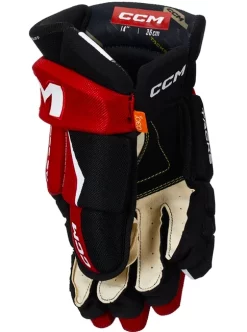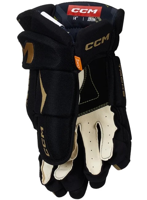 Gants de hockey sur glace Les CCM Tacks AS 580 JR en noir et or sont produits dans des tailles 10, 11 et 12 pouces.