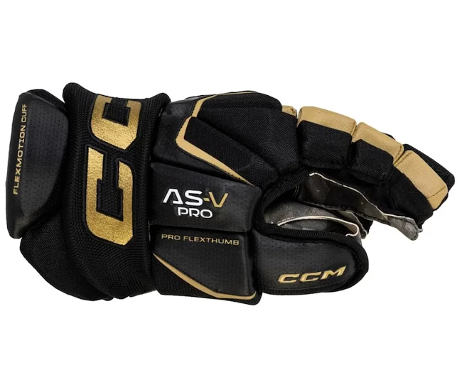 Les gants noirs et dorés sont fabriqués en tailles 13, 14 et 15 pouces.