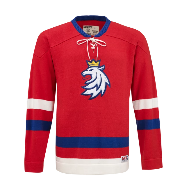 Soutenez et encouragez notre représentation du hockey avec ce chandail CCM à manches longues et lacets à col, grâce auquel vous pouvez porter un chandail de différentes manières.