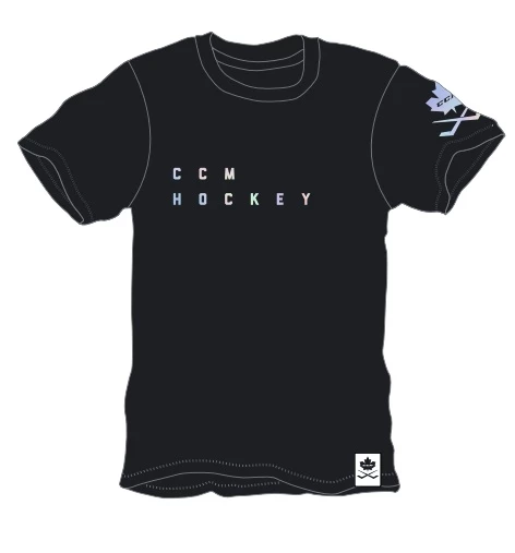 Le t-shirt noir CCM Blackout Iridescent S/S Tee SR deviendra le numéro 1 de votre garde-robe grâce à son design simple mais élégant. L’inscription sur la poitrine complète le logo sur la manche gauche du t-shirt, orné d’une feuille d’érable canadienne. Il fait référence au pays dans lequel la marque de hockey CCM a été créée, l’un des meilleurs fabricants de kits et d’accessoires de hockey.