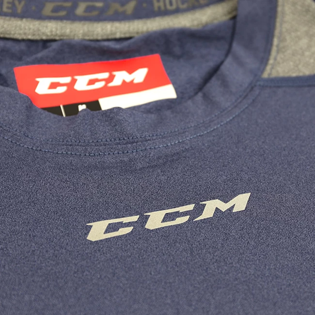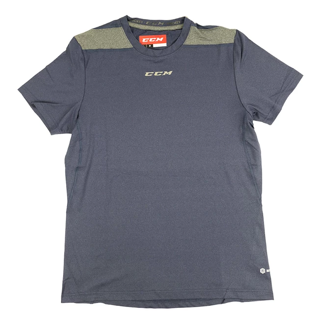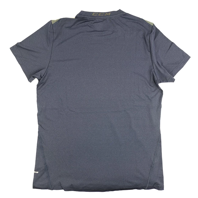 Le t-shirt possède une encolure ronde, un logo CCM réfléchissant sur le devant et un logo CCM imprimé à l’arrière du cou.