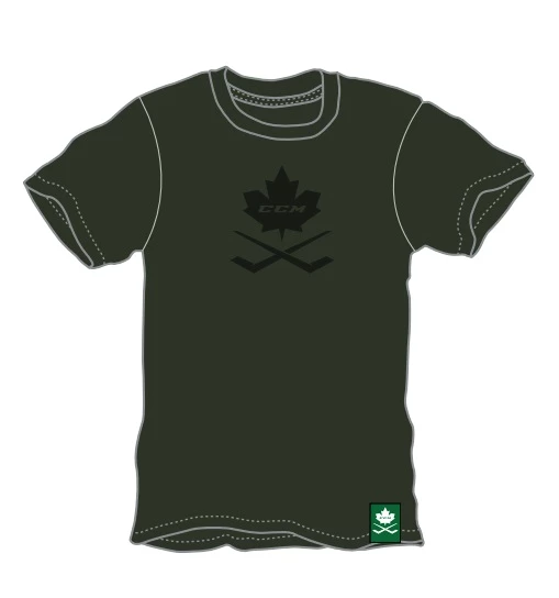 Le T-SHIRT CCM NOSTALGIA LEAF S/S TEE SR DARK GREEN est composé à 100 % de coton et est fabriqué uniquement en vert.